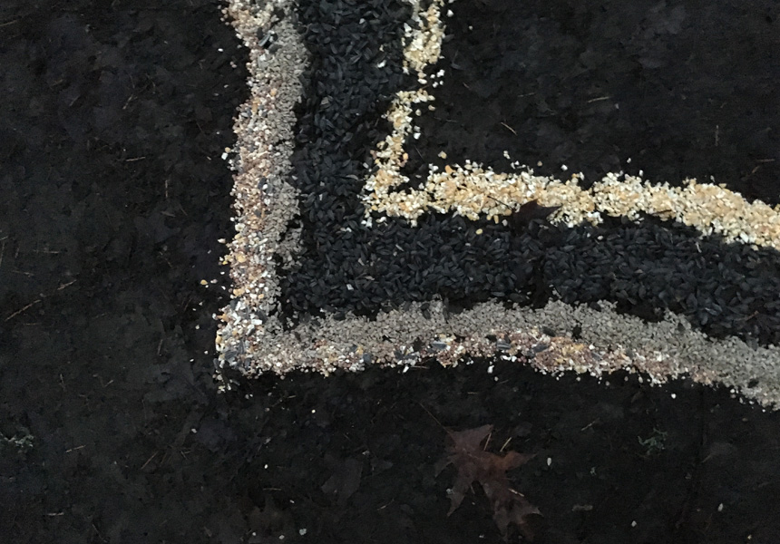 (we used sunflower seeds, mixed birdseed, and some cracked corn, but I'm pretty sure the birds and other creatures appreciate any color/kind. Hang in there, everybody, spring and better weather are coming soon!)