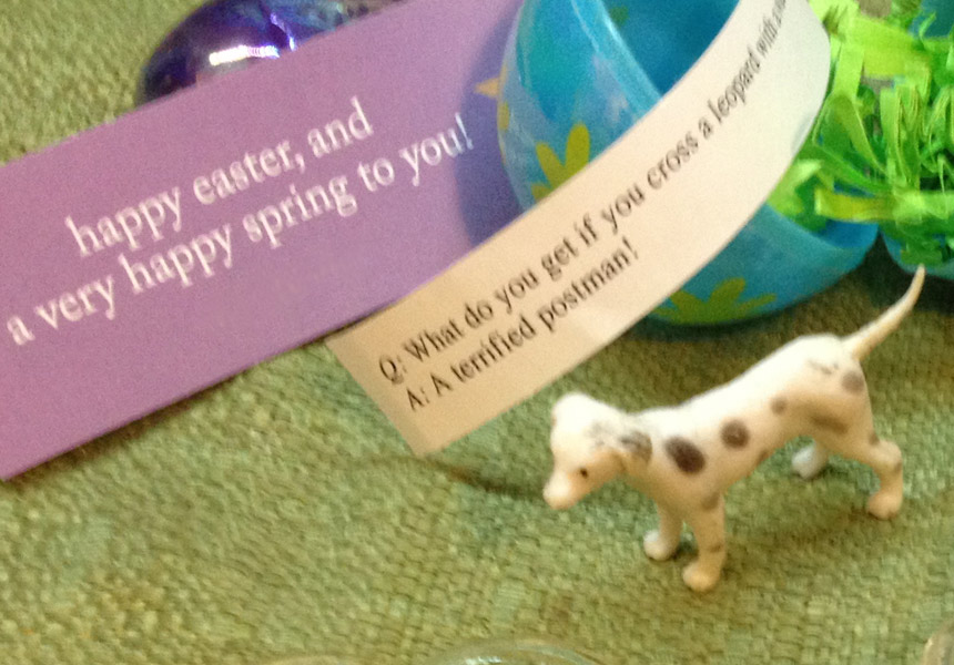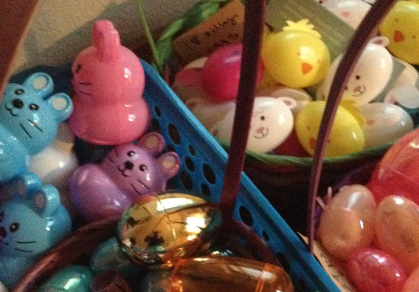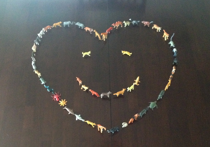 see full postI couldn't resist. This week I made a heartsmiley on the dining table from all the little plastic animals that were getting ready to be stuffed into Easter eggs later in the week... read more